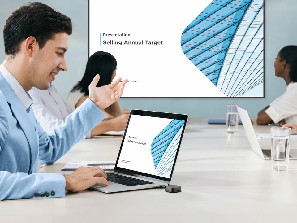 Trình chiếu Full HD tức thì bằng ViewShare WPD-900 tùy chọn. Kết nối USB-C hoặc giao thức gốc, người dùng truyền hình từ laptop hoặc thiết bị di động không cần Wi-Fi hay phần mềm. Kết nối điểm-điểm an toàn và chuyển đổi người dùng nhanh chóng. Bộ công cụ WPD-900 bán riêng.