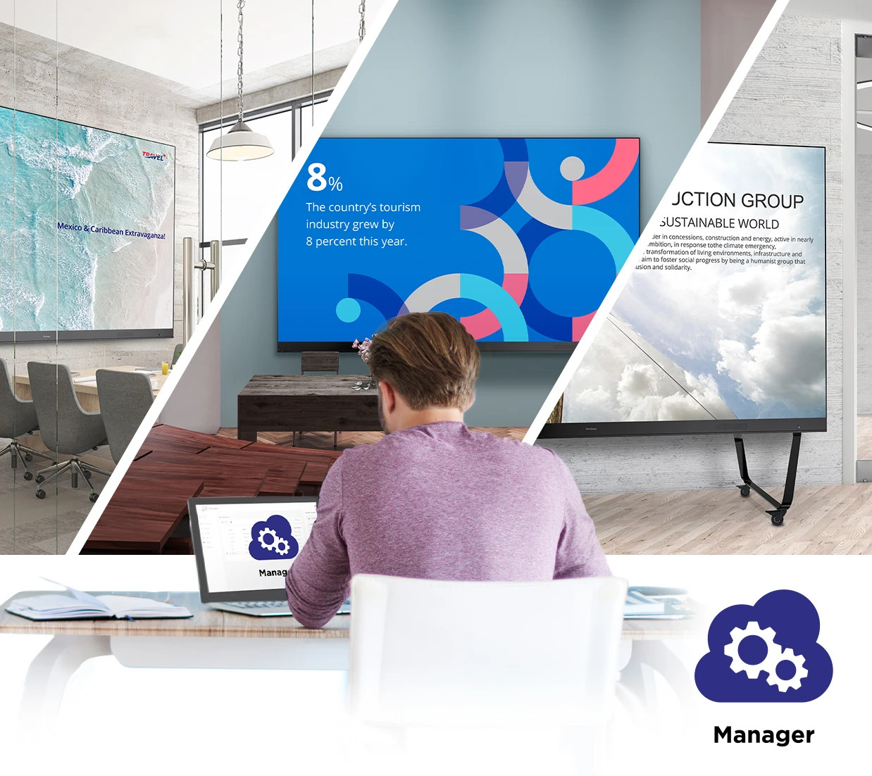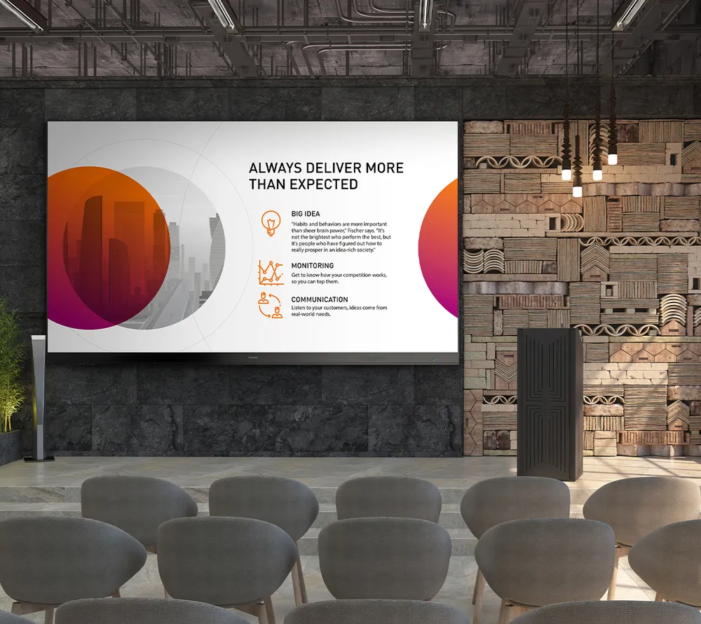 Ví dụ, một câu lạc bộ thể thao danh tiếng tại Úc đã sử dụng màn hình ViewSonic All-in-One LED 135 inch gập gọn, di động, để biến quầy bar trên sân thượng thành không gian trình chiếu sôi động trong mùa thể thao. Ngoài mùa giải, cùng màn hình ấy được tận dụng làm bảng chào đón sang trọng ngay sảnh chính — một thiết bị đa mục đích — tránh được thời gian ngừng hoạt động kéo dài của khách sạn.