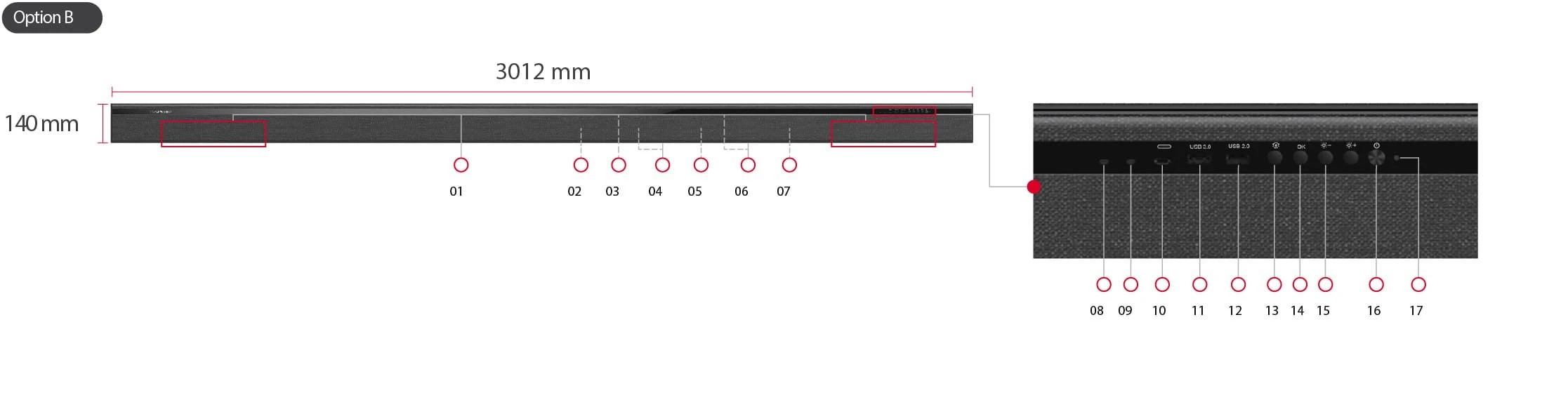 | Phụ kiện tiêu chuẩn | • Hộp điều khiển: LD-SCB-023 • Dây nguồn: 1 • Cáp LAN (Cat 5E): 1 • Cáp mở rộng IR: 1 • Điều khiển từ xa: 1 • Hướng dẫn cài đặt: 1 • Treo tường: 1 • Phụ tùng thay thế: Mô-đun LED 7% • Công cụ bảo trì: LD-MK-004 x1, LD-MK-006 x1 |