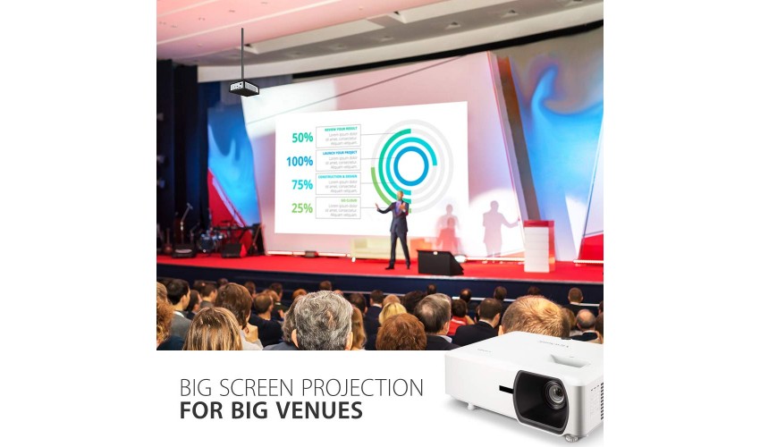 Linh động trình chiếu ở những địa điểm lớn đó là khả năng chiếu lên màn hình bao nhiêu inch? Với máy chiếu hội thảo ViewSonic LS920WU, mang đến cho các buổi hội nghị, hội thảo kích thước màn hình 300inch ấn tượng, nội dung sắc nét và sinh động với Công nghệ màu SuperColor™ độc quyền của ViewSonic, cung cấp được gam màu rộng, chân thật để thu hút mọi ánh nhìn của khán giả bên dưới.