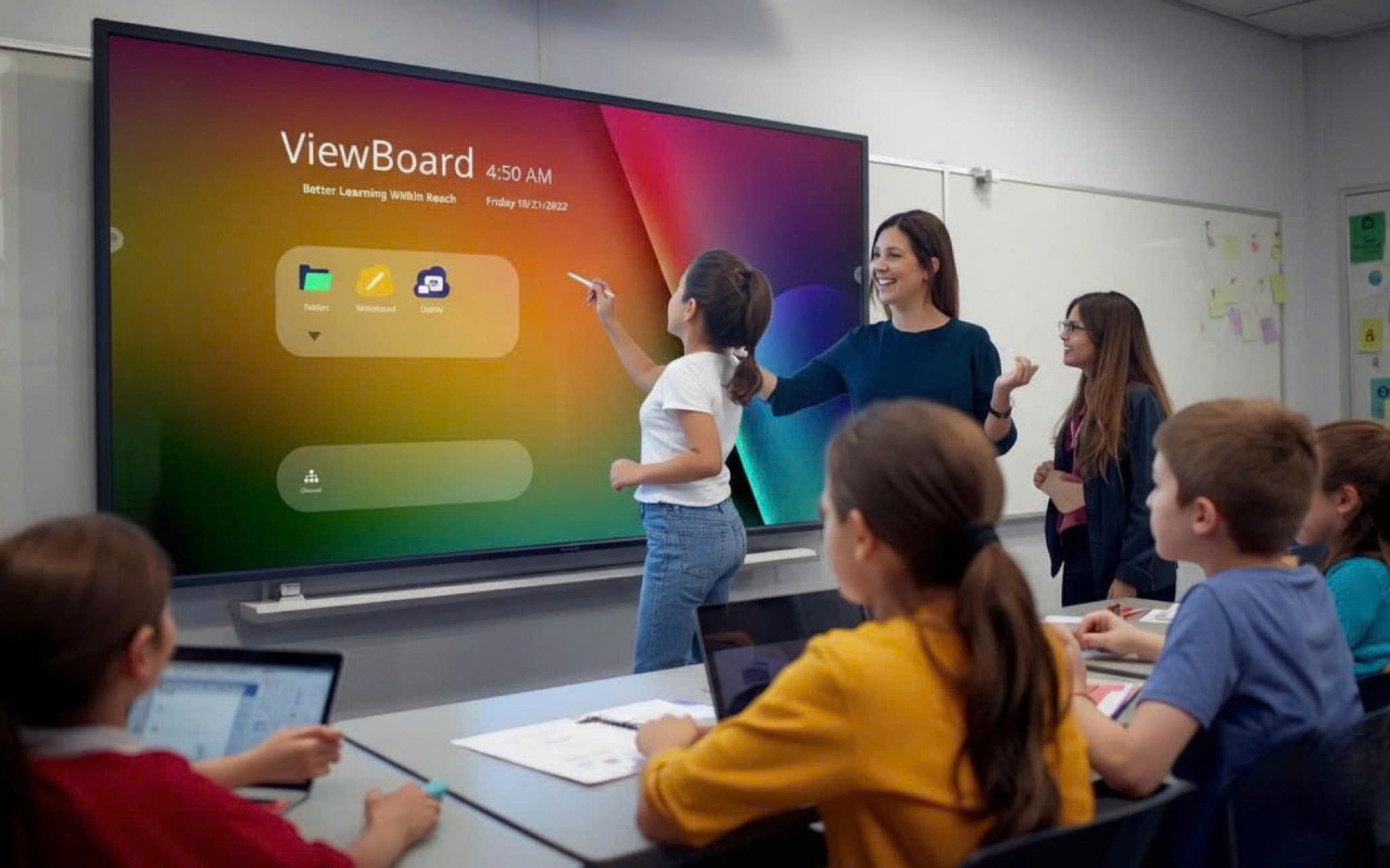 1. ViewSonic Phiên bản myViewBoard 3.0 mới nhất mang đến một công cụ giảng dạy toàn diện, đã nhận ISTE Seal trong hạng mục “Công cụ Sáng tạo”. Nền tảng này được hỗ trợ bởi công cụ quản lý thiết bị Manager và giải pháp chia sẻ màn hình không dây AirSync an toàn, ổn định.