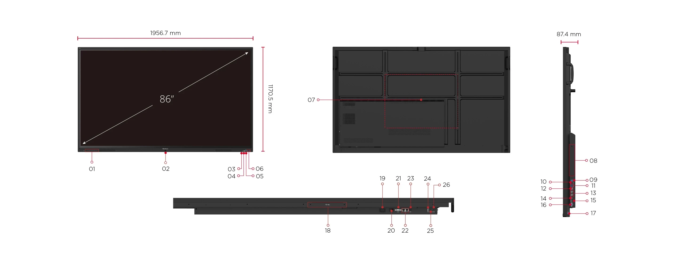 | 7. Giá treo tường VESA® 800 x 400 mm | 20. Công tắc nguồn |