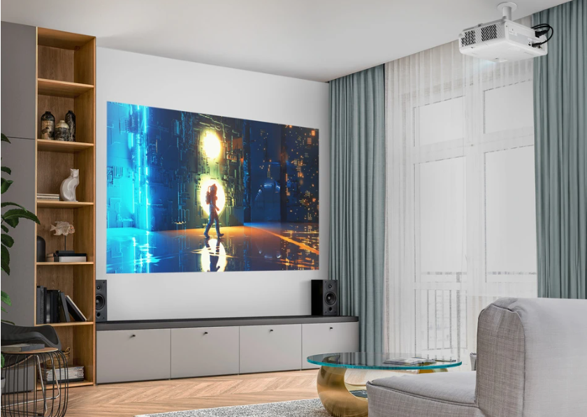 Trải nghiệm không gian điện ảnh thực thụ với màn hình lên đến 300”, biến mọi căn phòng thành rạp chiếu phim cá nhân cho gia đình và bạn bè.
